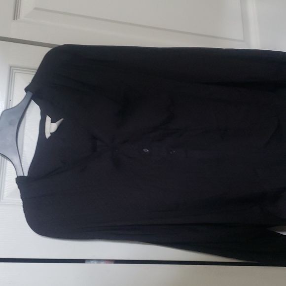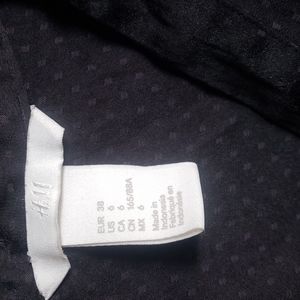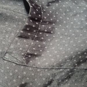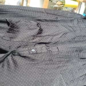beautiful silky black blouse with small black polka dots. in perfect condition and great for work!