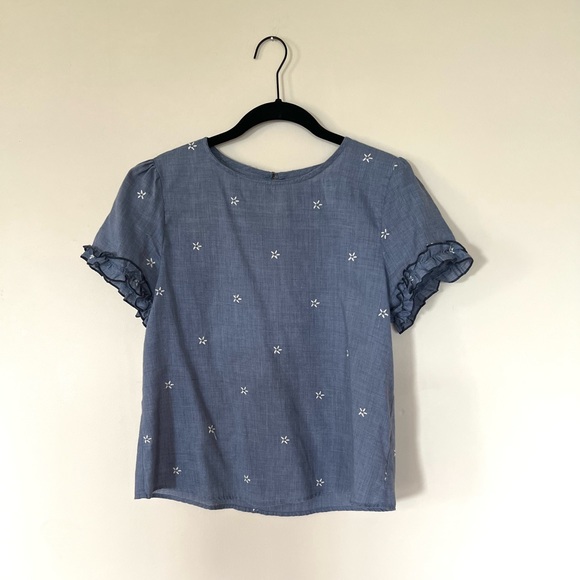 Flower embroidered blouse with ruffle detailing on sleeves