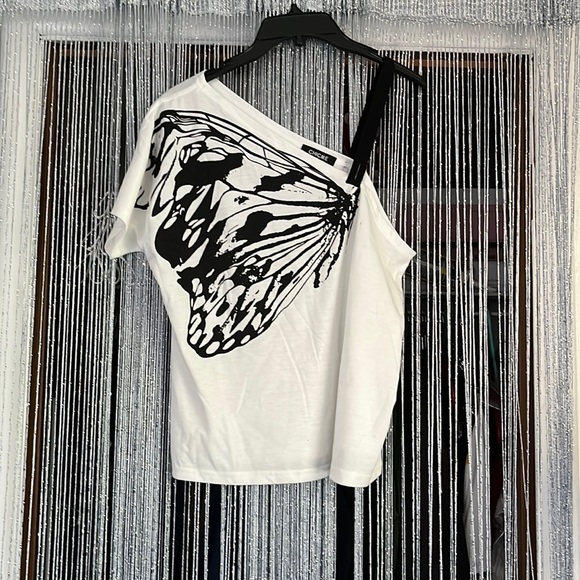 One shoulder with straps on one side.