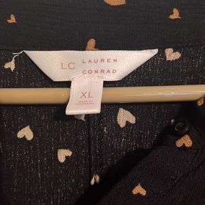 Three-quarter length sleeves black blouse with brown hearts Lauren Conrad extra large