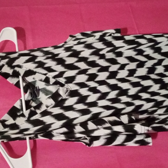 black and white open shoulder shirt. tag says 3 x but it fits more like a large