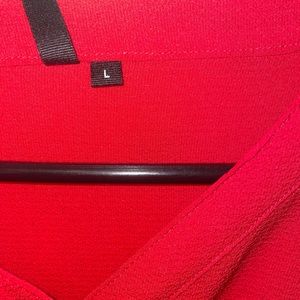 This is a red blouse is very cute if you’re going out and has no rips or stains, and it has gold rhinestones on the shoulders