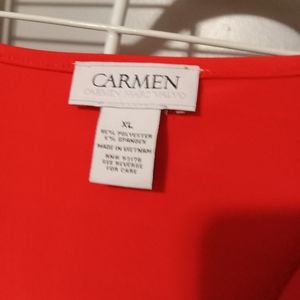 Red with gold tone shoulder decorated blouse. Gold studs and zipper.
