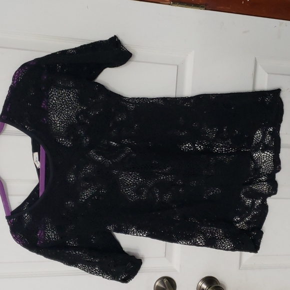 Black lace/net like short sleeve super cute shirt by lovely. size its very flowy and size is around l/xl. great condition
