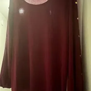 Peep sleeve blouse-perfect for a night out or a conservative look in the office or a business meeting! The blouse is burgundy.