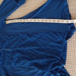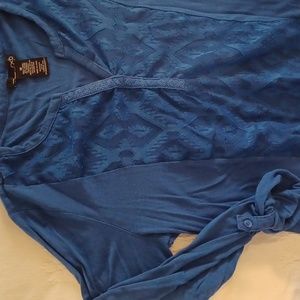 royal blue, rayon accent polyester knit , roll up button sleeves. casual, comfy, great color