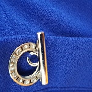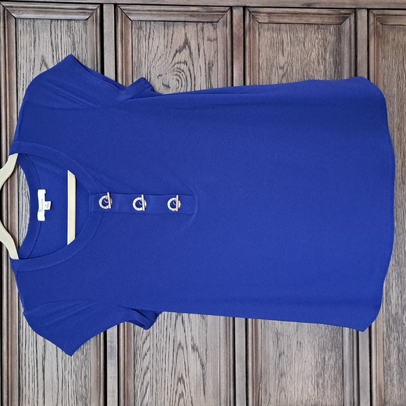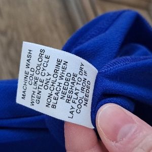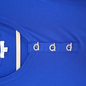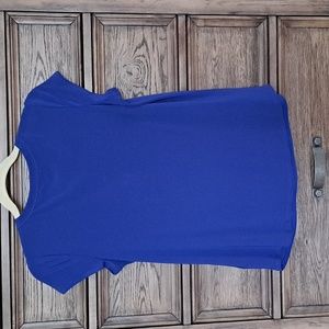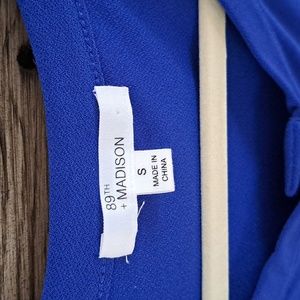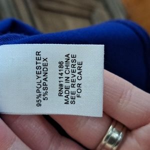 blue blouse size small, 3 buttons on front, not as bright as pictured, runs big for a small, pet and smoke free home