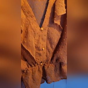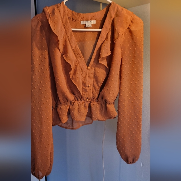 orange blouse embroidery details crop style sleeves and back slightly see through