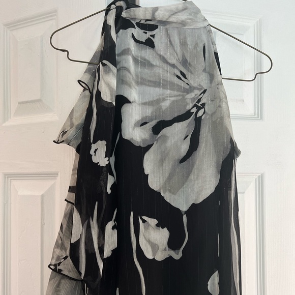 Black and gray ruffled blouse