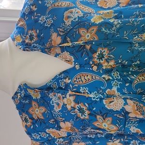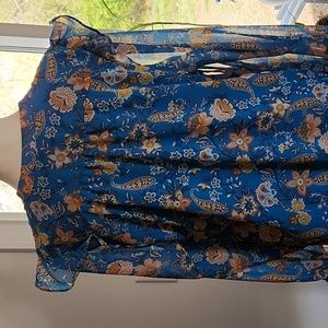Blue and Orange blouse with attached cameo. size M/L. Gently used. No stains.