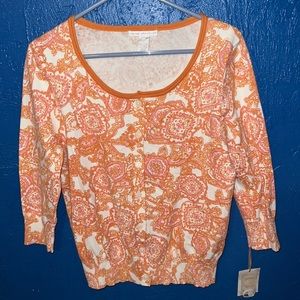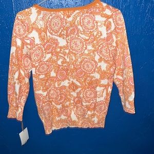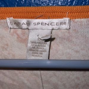 Brand new sweater like blouse, size large 20% cotton and 30% nylon by Sarah Spencer 23 inches top to bottom 20 inches armpit to armpit 9 inches on the shoulders 5 inches on the wrist