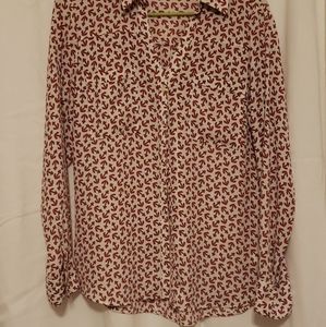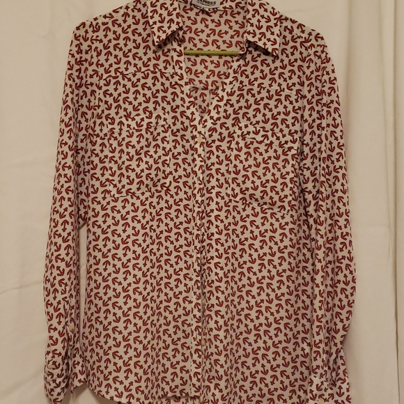 express medium office blouse red and white with anchors pattern PTP is 20 inches