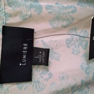 white blouse with light blue details as flowers