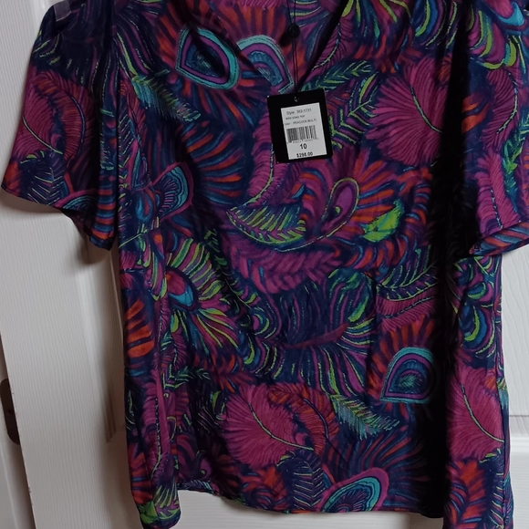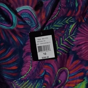 Danelle Lepore NWT OFF SHOULDER PEACOCK FEATHERS INSPIRED LIGHT WEIGHT BLOUSE