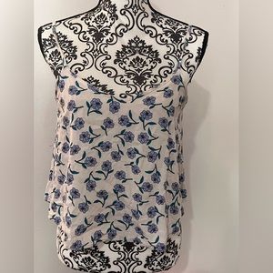 crème/ white colored flower blouse, super cute, comfortable material, nice material, coverage, worn before, adjustable straps