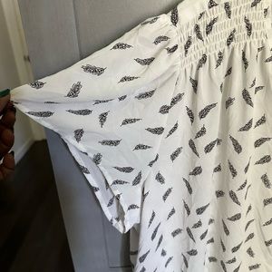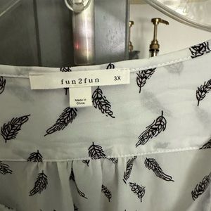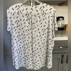 EUC Beautiful v-neck blouse with feather print. Good for work or play.