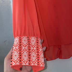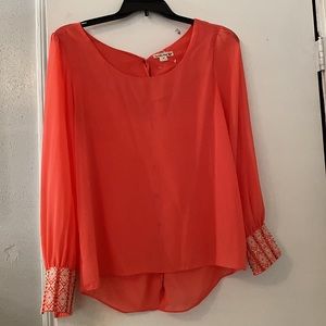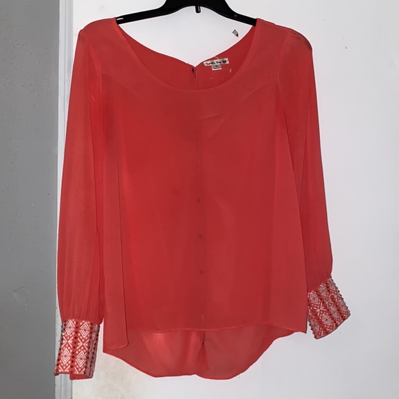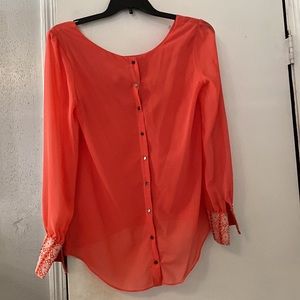 Super cute shirt. Buttons up in the back as shown in the pictures. Sleeves button together also shown in the pictures