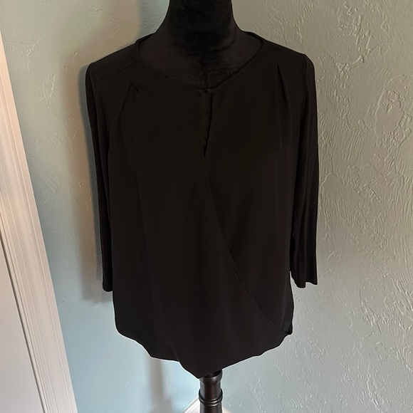 Black blouse 3/4 length sleeves Pleated back Express Size small Gently used, good condition