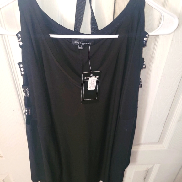 black dressy blouse size large made by Ava and Grace. never been worn and still have the tags on it.