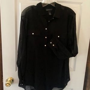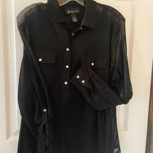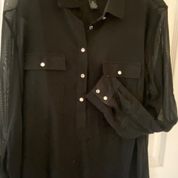 Camisole 100# nylon with see-through rhinestone button down shirt. 100 % polyester