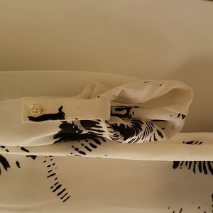 Pre-owned, black and white snap front with embroidery stiching. slits on sides with rolled up buttons on sleeves.