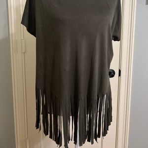 - green - suede - cute fringe detail on bottom - short sleeve - smoke free home - no pets