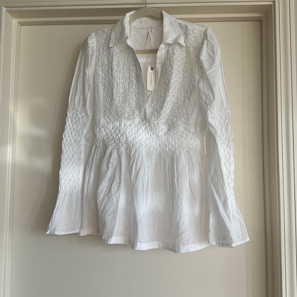 Long sleeve white blouse with flair sleeves with open front beautiful fit new