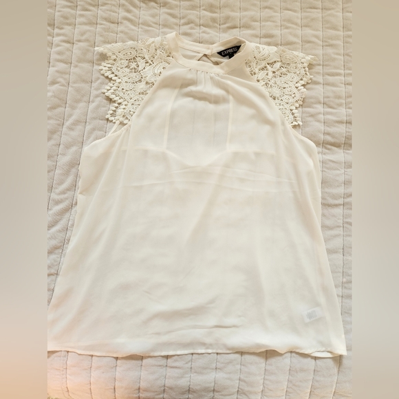 ivory lace sleeve blouse. excellent condition open back detail size large smoke free, pet friendly home