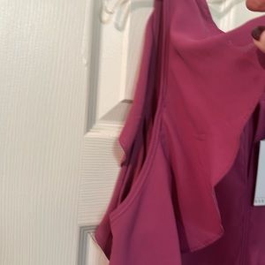 Fuscha blouse. NWT. Tank base with ruffle sleeves and relaxed peplum style bottom. Button closure in back.