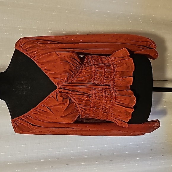 Metallic dot top with sheer sleeves. Really pretty brick or rust color. NWOT If you like it, take it home by making an offer! #7