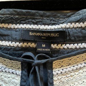 Banana Republic blouse, blue and white, tie-front, 100% cotton, medium