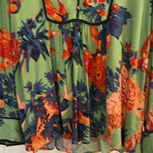 NWT Anthropologie Beautiful smock blouse great print piping and beautiful buttons nwt size small green red orange w blue piping