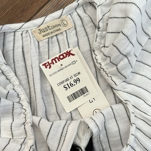 Size large, Just Living the Dream top. White with black stripes. NWT.