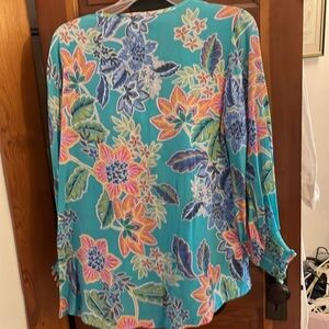 Great blouse trimmed in lace and gathered sleeve cuffs worn once great condition