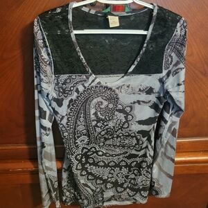 black and gray lace long sleeve blouse