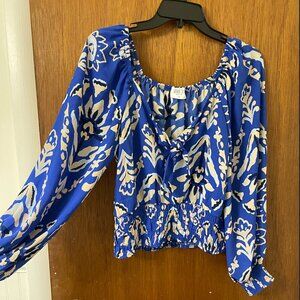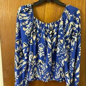 This was a TJMAXX purchase and was only worn once and is a super cute shirt for going out for the night. It has an elastic waist and is slightly cropped (I am 5'8).