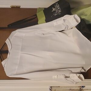 long sleeve button down blouse with front pockets, and button on the sleeves.