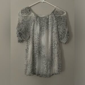 Blouse, small size. Can be worn off shoulder. White with grey spots