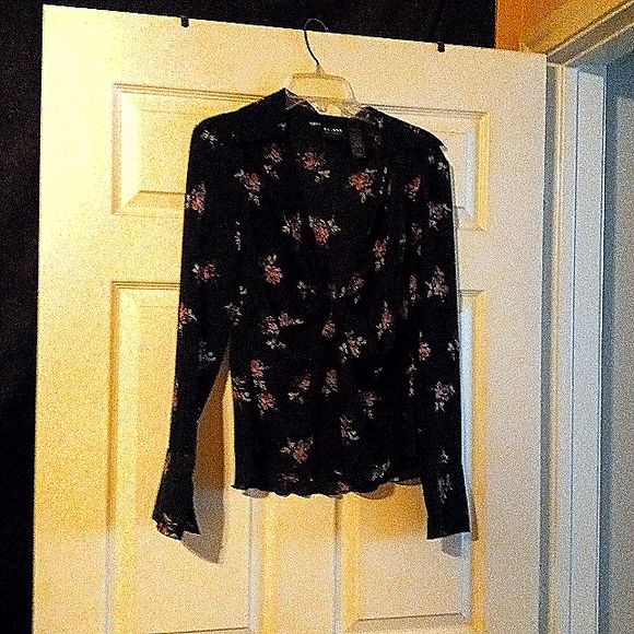 black crepe floral deep v, long sleeve dressy/work