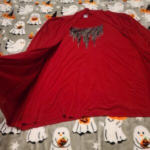 Red blouse with silver dripping sequence long sleeve super soft, long.