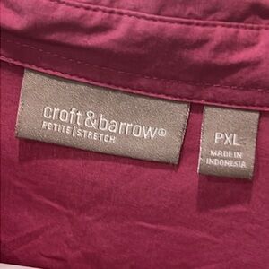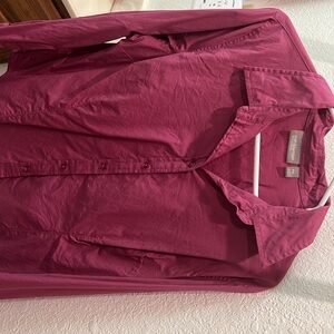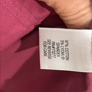This Blouse is so comfortable because it stretches . It has spandex. Buttons with Long sleeve. Worn 1 time.