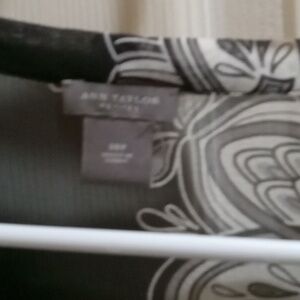 this is a very beautiful black blouse with white floral print. blouse is sheer but has attached camisole. it is from ann Taylor loft size 10p. it has attracted belt made out of same material that ties in the back.