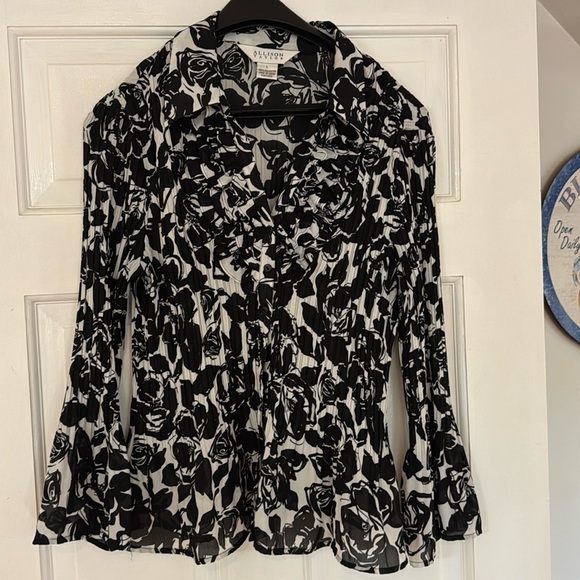 Size large flowy and feminine blouse. Lightly used. Very good condition