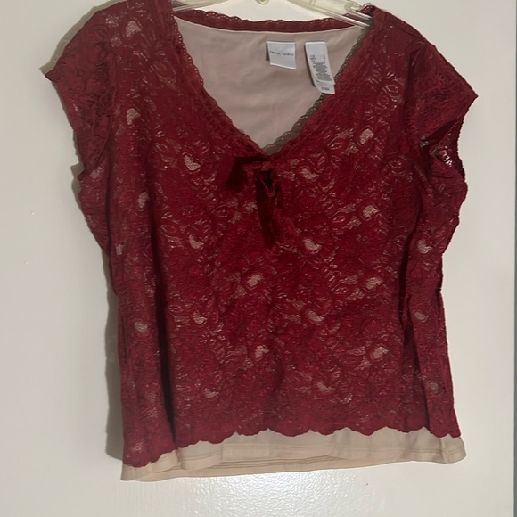 Women’s Blouse, pullover one piece, lace overlay, 57% nylon, 43% Rayon,10% polyester