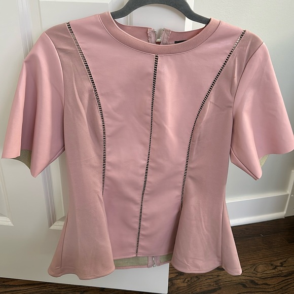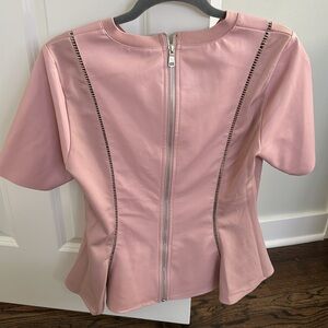 Super chic top with zipper in the back. It is mixed of leather and soft material. Beautiful light pink color. Great fit. Perfect condition.