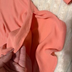 Pink long sleeve blouse, mesh fabric, detergent stain in the front.