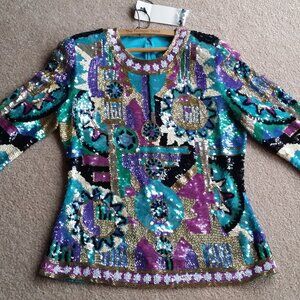 An evening sequin blouse, hand-embroidered and patterned. A unique and rare piece.