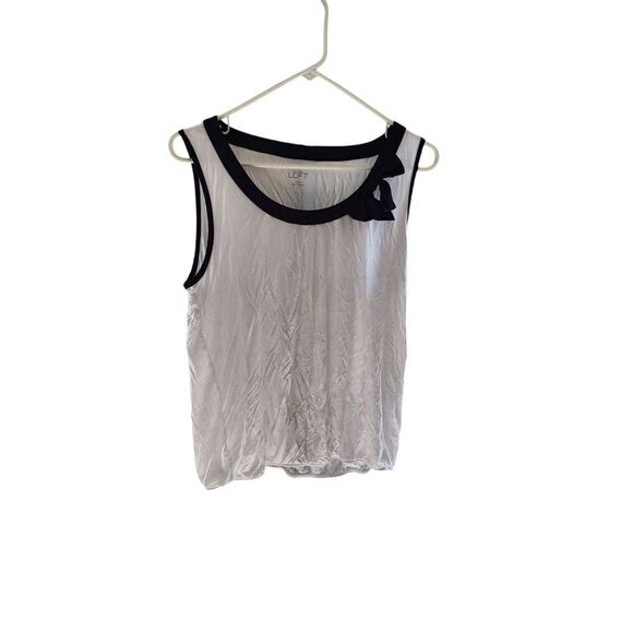 A white blouse with blue at the top with a bow. The pit to pit is approximately 20.5 inches.