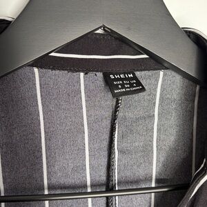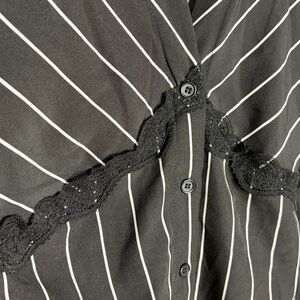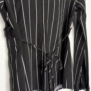 Black & White Small Beautiful blouse from SHEIN with lace design. Striped, bell sleeves, and cinches at the waist.