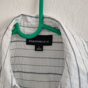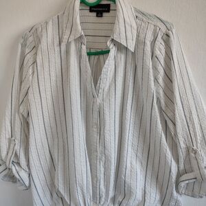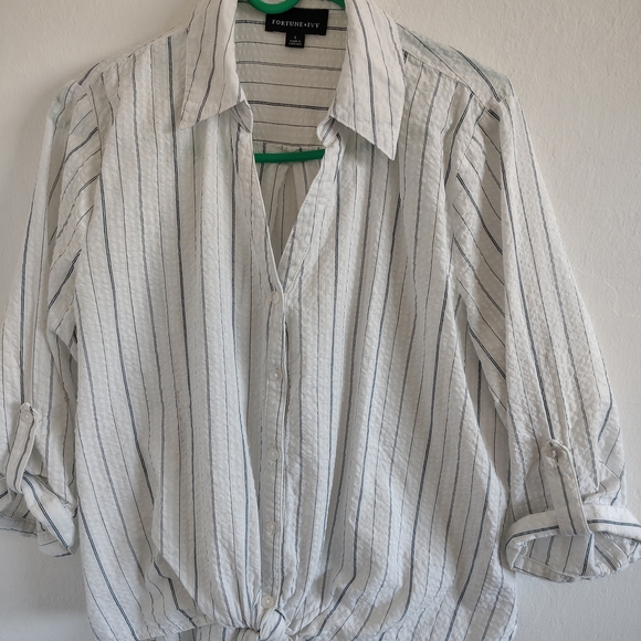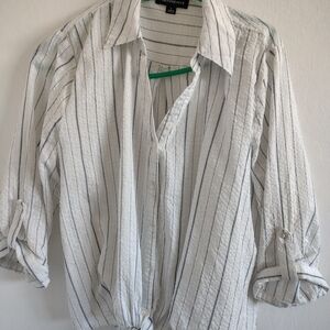 White blouse with blue stripes, new, three-quarter sleeves. Size L